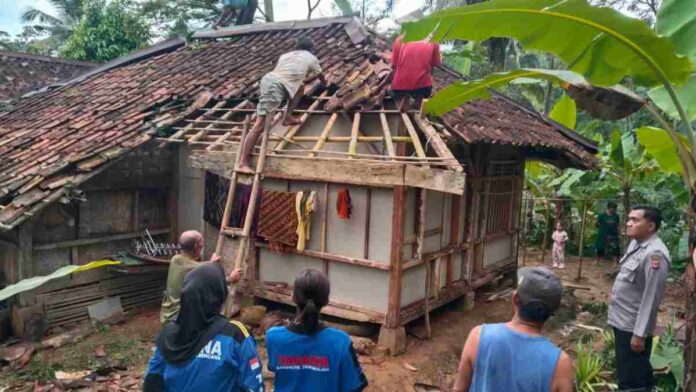 Satu rumah rusak sedang: Mengalami kerusakan serius pada bagian atap akibat hantaman batang pohon besar.