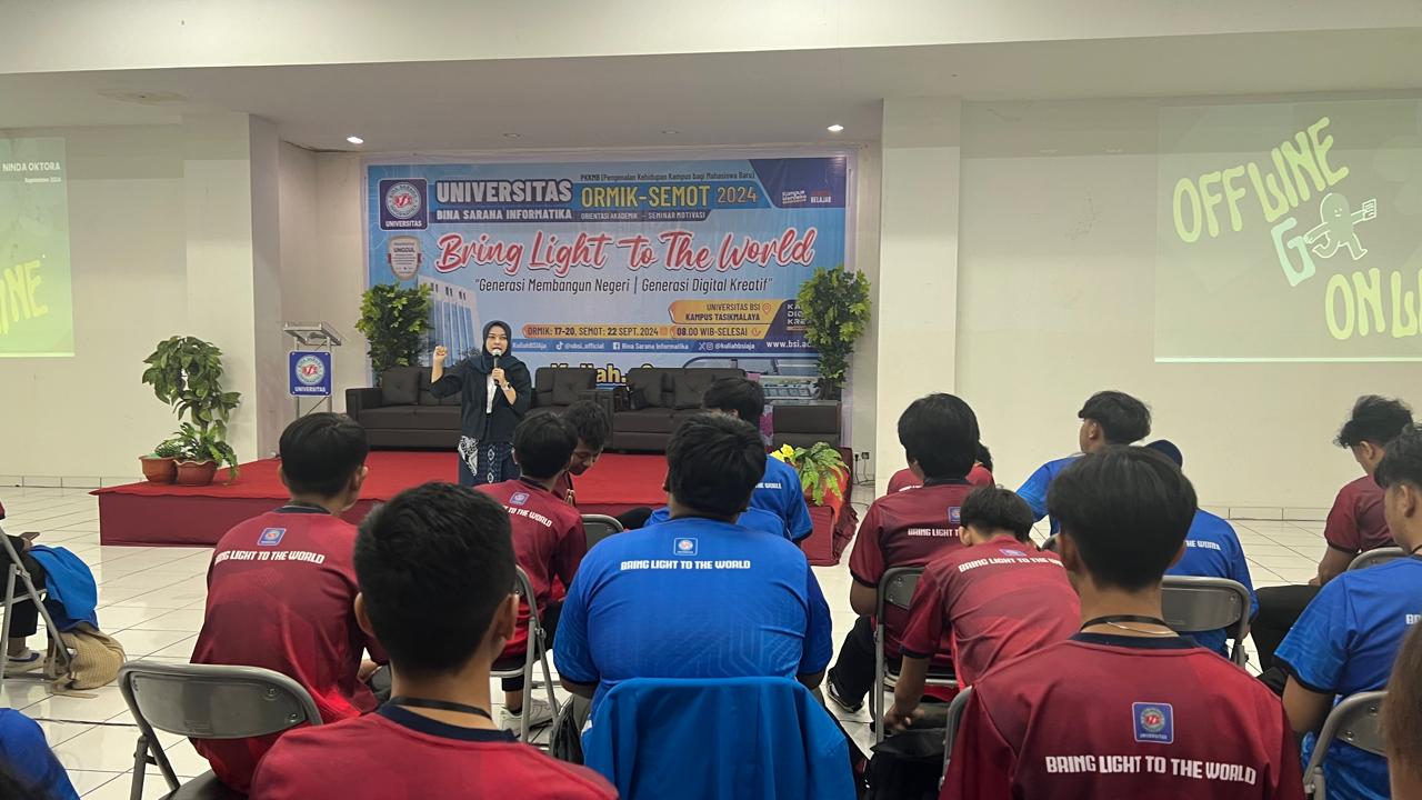 TasikmalayaHitz, Tasikmalaya – Universitas BSI (Bina Sarana Informatika) Kampus Tasikmalaya kembali menginspirasi mahasiswanya dengan mengundang salah satu alumni sukses di bidang kewirausahaan, Ninda Putri Oktora, sebagai salah satu pembicara  dalam seminar Motivasi yang dilaksanakan Minggu 22 September 2024 di aula kampus Universitas BSI Tasikmalaya. Ninda, yang merupakan alumni Universitas BSI Tasikmalaya tahun 2012, kini menjalankan bisnis fashion dengan omset mencapai ratusan juta rupiah. Dalam seminar ini, Ninda berbagi tips dan strategi kepada mahasiswa baru tentang cara meraih kesuksesan di dunia bisnis, terutama di bidang fashion.