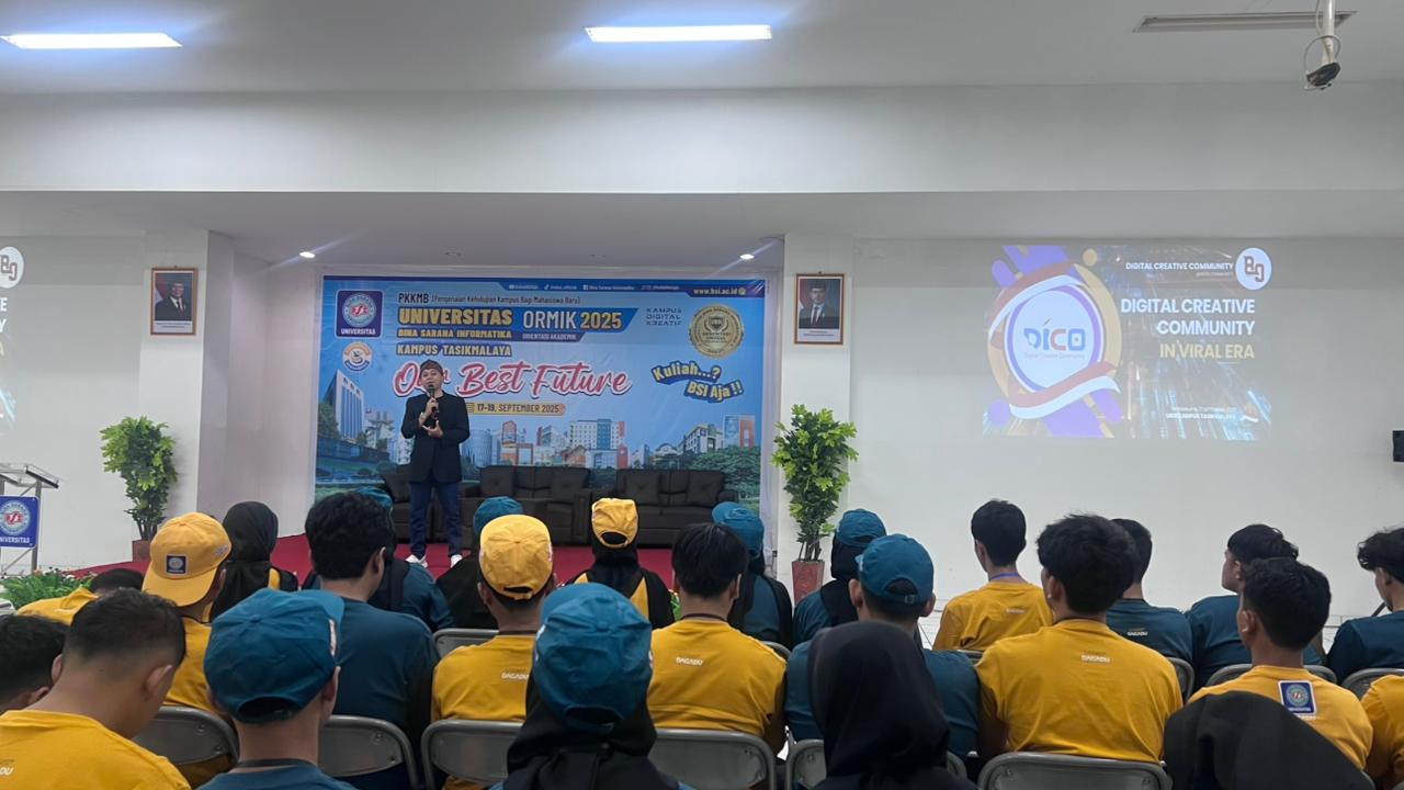 Tasikmalaya.Hitz Tasikmalaya, Minggu, 21 September 2025 – Universitas Bina Sarana Informatika (UBSI) Kampus Tasikmalaya menyelenggarakan kegiatan pengenalan DICO (Digital Creative Community) dalam rangka penyambutan mahasiswa baru. Bertempat di aula kampus UBSI Tasikmalaya, kegiatan ini dihadiri ratusan mahasiswa baru yang antusias mengenal lebih dekat komunitas kreatif berbasis digital tersebut.