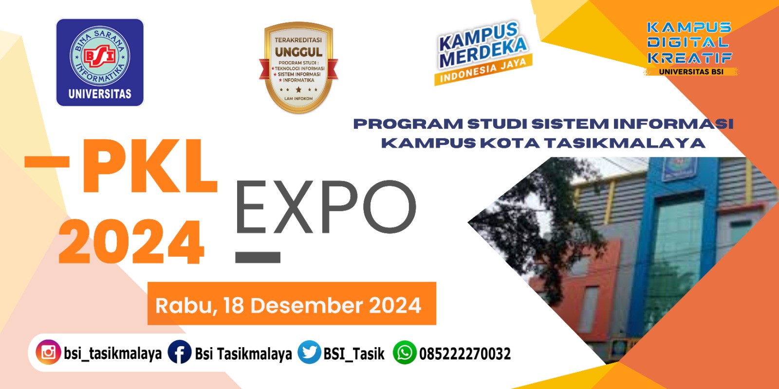 TasikmalayaHitz, Tasikmalaya – Universitas BSI (Bina Sarana Informatika) Kampus Kota Tasikmalaya, Program Studi Sistem Informasi, tengah bersiap menyelenggarakan PKL Expo 2024. Acara ini dijadwalkan akan dilaksanakan pada Rabu, 18 Desember 2024 di Kampus UBSI Kota Tasikmalaya.