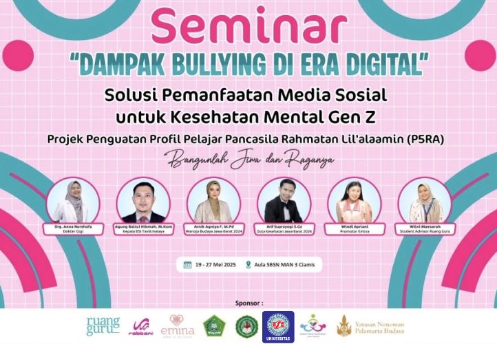 TasikmalayaHitz, Cijantung, Ciamis – Dalam rangka meningkatkan kesadaran akan dampak bullying di era digital, MAN 3 Cijantung akan menyelenggarakan seminar bertajuk “Solusi Pemanfaatan Media Sosial untuk Kesehatan Mental Gen Z”, Selasa (20/5), bertempat di Aula MAN 3 Cijantung.
