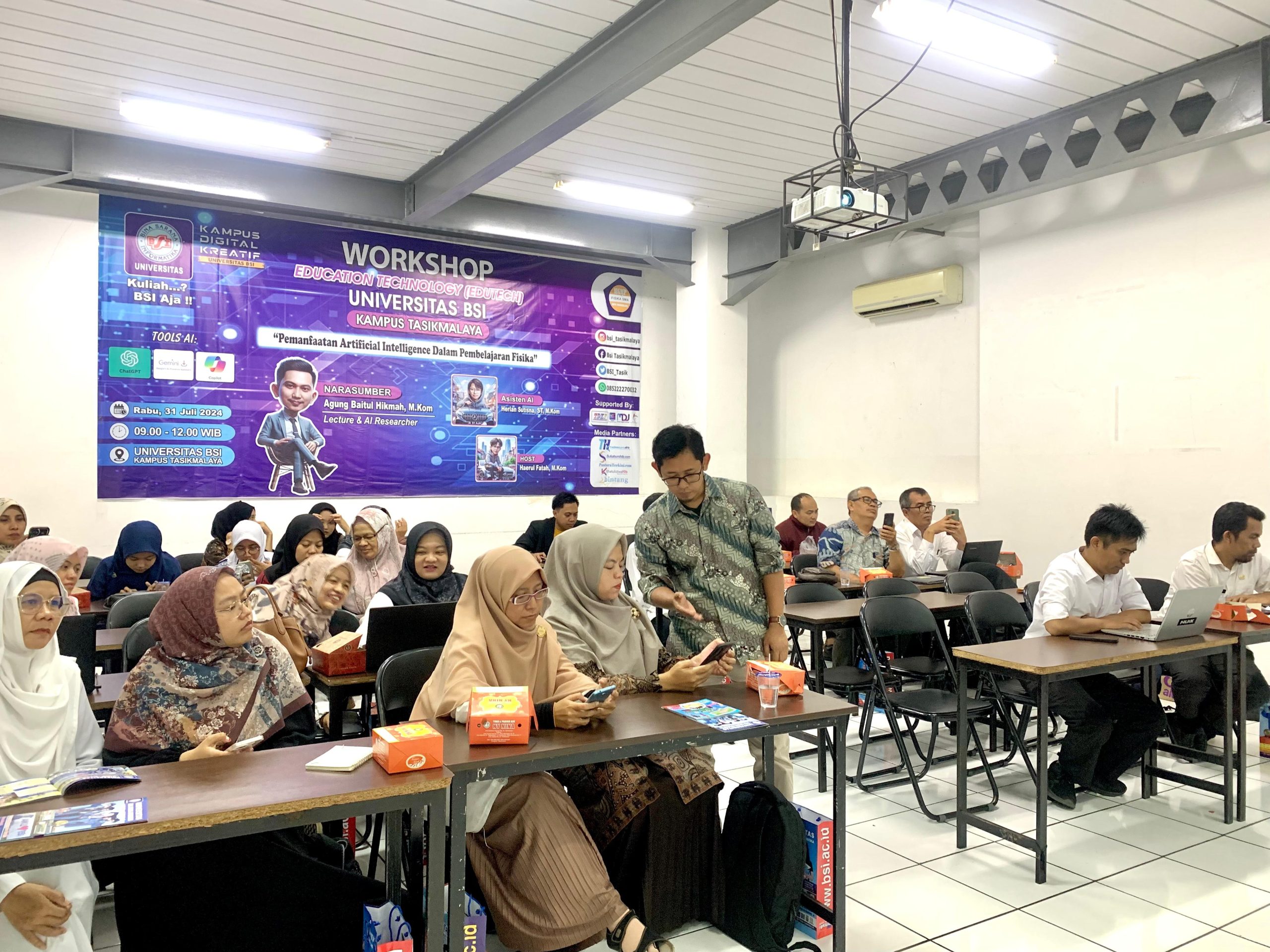 TasikmalayaHitz, Tasikmalaya – Dalam upaya terus mendorong inovasi di bidang pendidikan, Universitas BSI (Bina Sarana Informatika) Kampus Tasikmalaya dengan bangga mengumumkan suksesnya menggelar workshop bertajuk “Pemanfaatan Artificial Intelligence dalam Pembelajaran Fisika” Yang dihadiri oleh para guru Fisika yang tergabung dalam MGMP Fisika Kota Tasikmalaya.