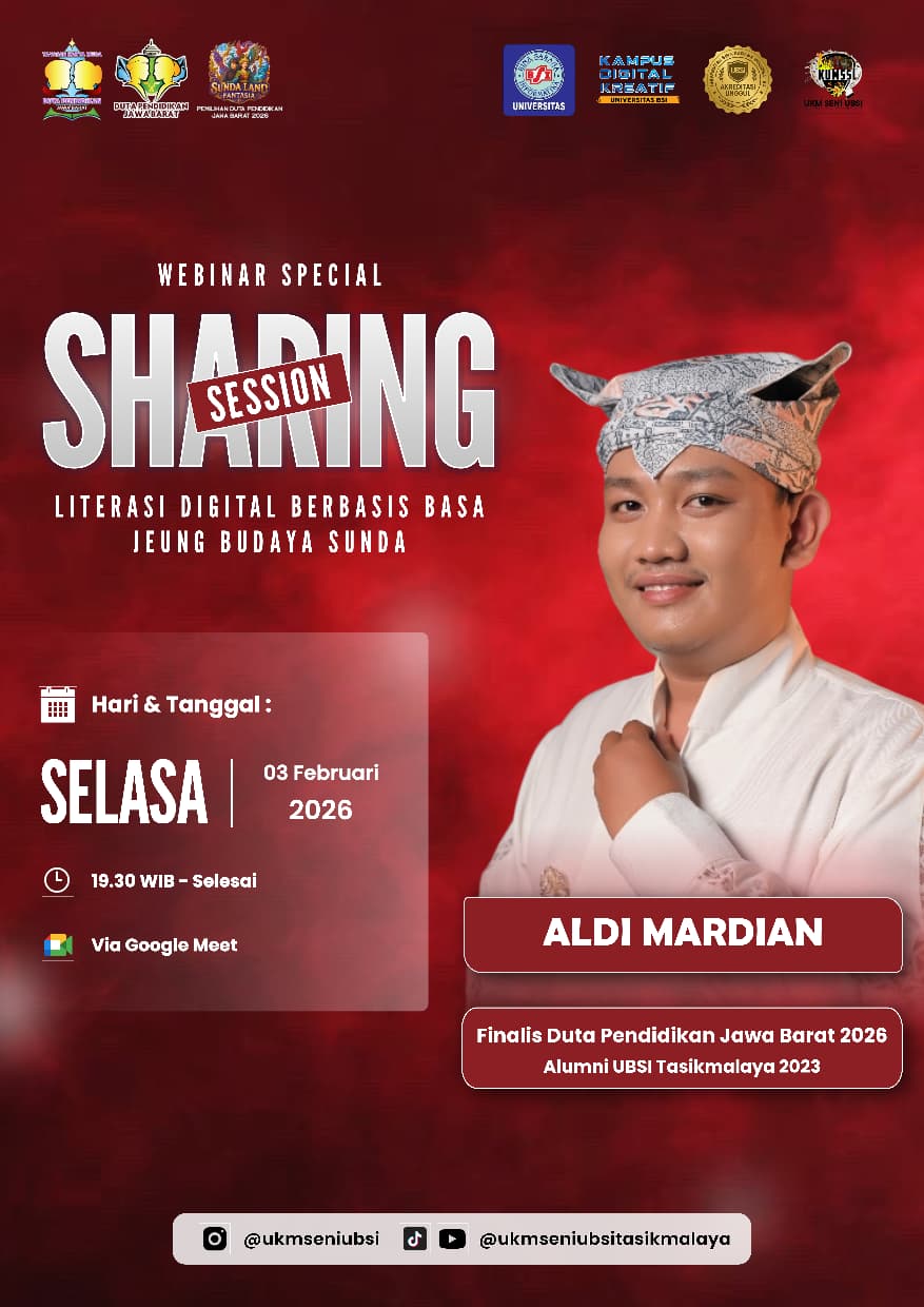 TasikmalayaHitz, Tasikmalaya – Universitas Bina Sarana Informatika (UBSI) Tasikmalaya melalui UKM Seni sukses menyelenggarakan kegiatan Sharing Session bertema “Literasi Digital Berbasis Basa Jeung Budaya Sunda” yang dilaksanakan secara daring melalui platform Zoom pada Selasa (3/2/2026).