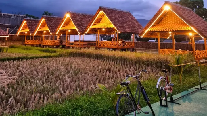 - Daya Tarik: Konsep utamanya adalah makan di saung-saung yang berdiri di tengah sawah dengan suasana yang tenang dan udara yang sejuk. Tempat ini ideal untuk acara keluarga atau rombongan besar karena menawarkan suasana outdoor yang luas.