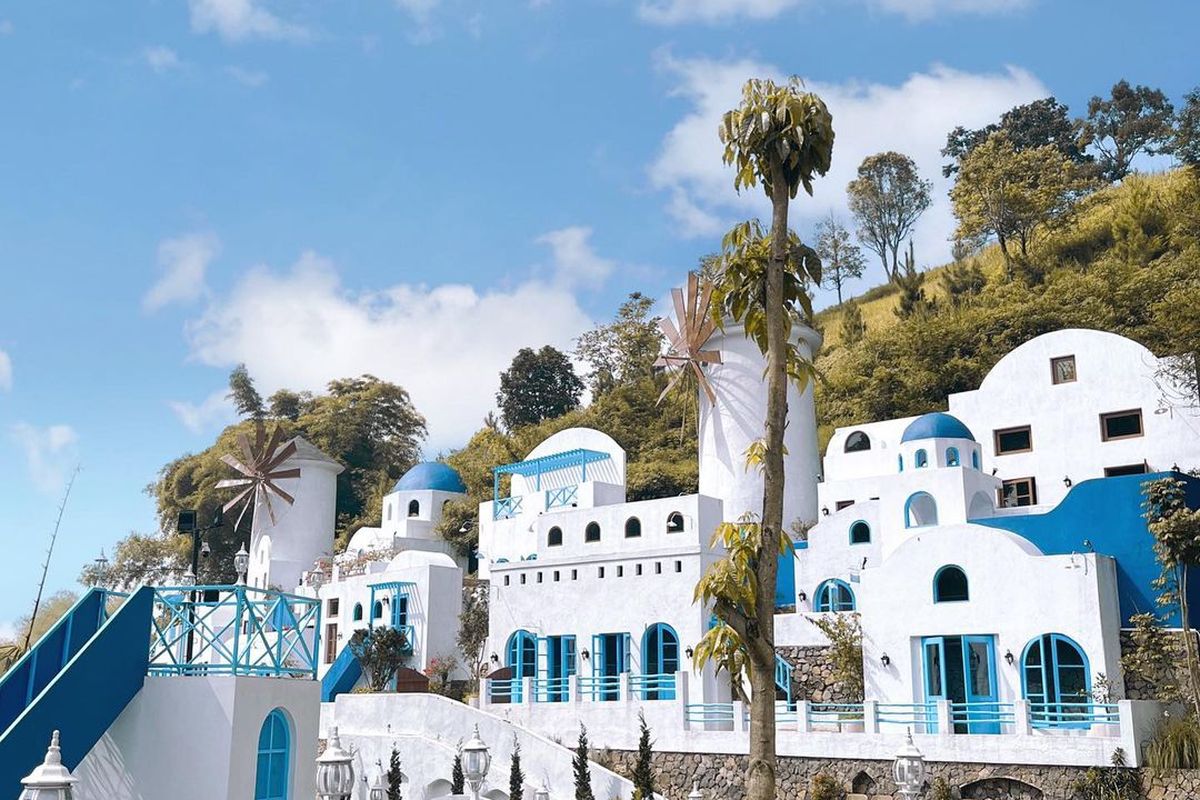Salah satu daya tarik yang paling mencuri perhatian dan menjadi pusat keramaian adalah area yang menyerupai bangunan biru-putih khas Santorini di Yunani. Dengan desain arsitektur yang sangat akurat, sudut ini menjadi tempat favorit bagi para pemburu foto untuk mendapatkan konten yang terlihat sangat internasional, apalagi jika dipadukan dengan langit biru atau cahaya jingga saat matahari mulai terbenam di ufuk barat. Keunikan Sarae Hills tidak hanya terletak pada visualnya yang “Instagenic,” tetapi juga pada pengalaman menjelajah yang dinamis karena setiap langkah kaki Anda seolah membawa Anda berpindah dari satu benua ke benua lainnya. Udara sejuk pegunungan yang menusuk kulit justru menjadi pelengkap sempurna yang membuat perjalanan “keliling dunia” ini terasa jauh lebih nyaman dibandingkan berjalan di tengah keramaian kota aslinya.