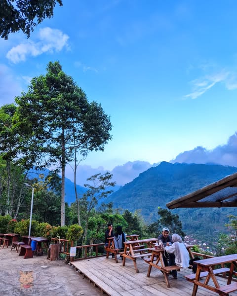 - View Alam Pegunungan: Hamparan hijau perbukitan dan megahnya Gunung Sawal menjadi latar belakang utama saat Anda menikmati secangkir kopi.